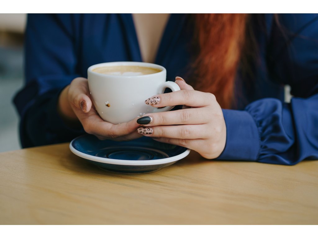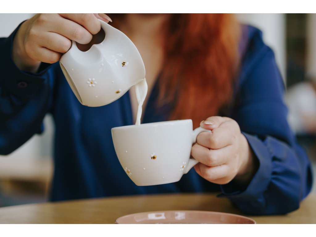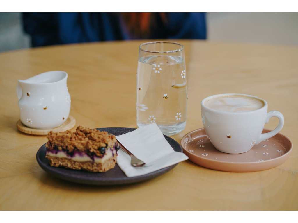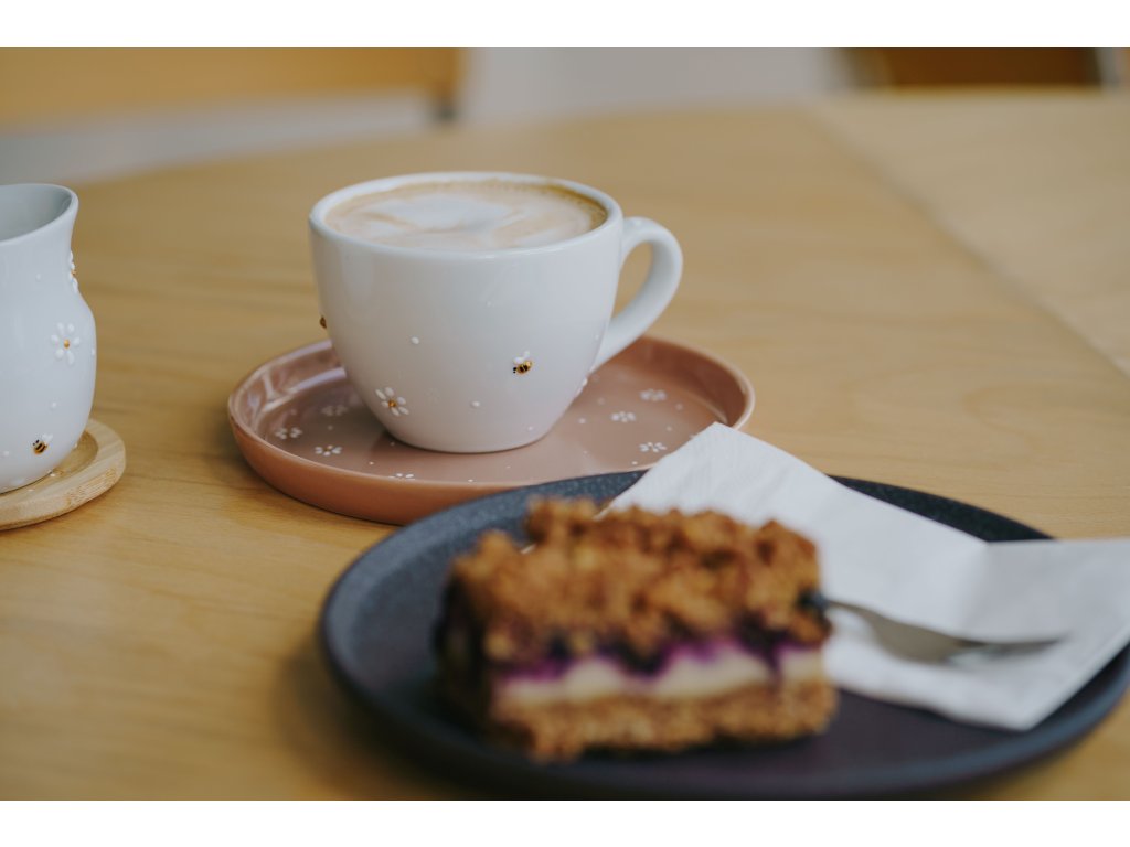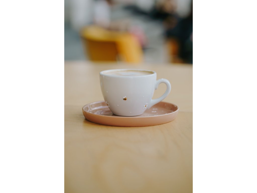 Ručně malovaný bílý porcelánový hrnek s romantickým minimalistickým designem